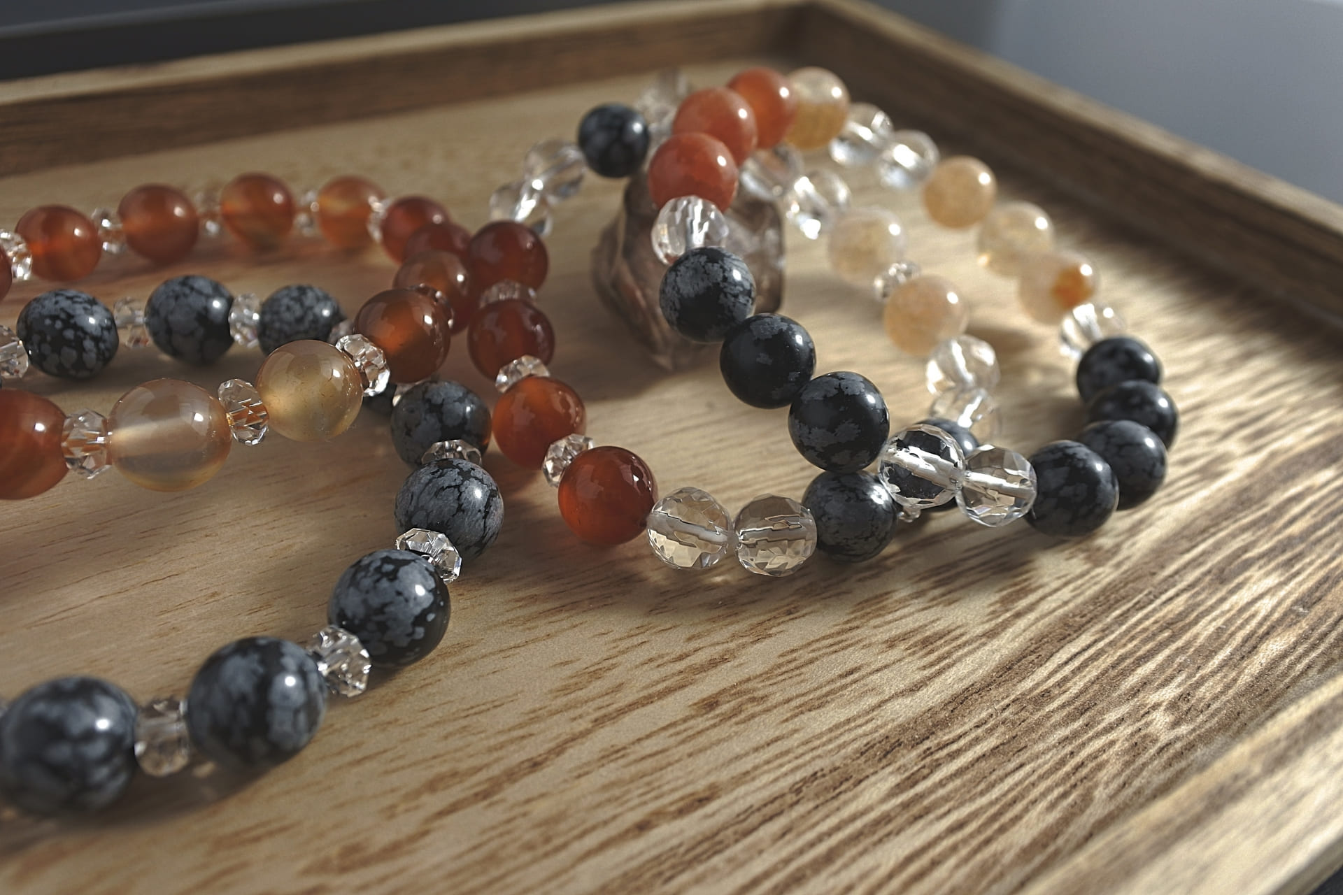 「真実を映す鏡」とも言われ、心の奥底にある感情や過去の傷、トラウマを表面化させ、解放へと導く力があるとされます。感情のコントロールを助け、ネガティブな思考を断ち切り、前に進む勇気を与えてくれる石です。邪念や悪意を跳ね返す魔除けとしても優れています。
